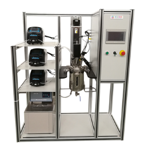 巖征儀器 三元前驅體材料反應釜主要組成部分有:反應釜、蠕動泵、在線PH控制系統(tǒng)、控溫循環(huán)裝置四部分組成,采用PLC+觸摸屏控制。